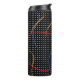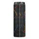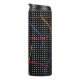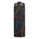 El estilo retro de los años 1980, la pintura de color primario traza un patrón de salpicadura en un fondo geométrico con puntos en blanco y negro.