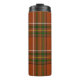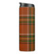 Patrón de tartán de twill con una paleta de colores cálida y rústica. Una base dominante de naranja quemada se superpone con bandas profundas de verde bosque y se acentúa con finas rayas blancas y amarillo dorado, creando una estética clásica inspirada en textiles patrimoniales y tonos otoñales.