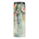 Esta hermosa pintura acuática cuenta con una cascada de flores colgantes, que incluyen rosas suaves de naranja y rosa y glicinia morada. El frondoso follaje verde y las delicadas flores se representan en un estilo flojo y fluido, con un entorno sereno de tonos verdes y amarillos mezclados, creando un ilustracion botánico claro y tranquilo.