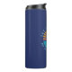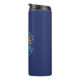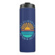 Una plantilla de foto redonda sobre un fondo azul oscuro. Haga clic en personalizar para cambiar la puesta de sol a su propia imagen, y el texto a la suya, o cómpralo como está.