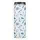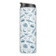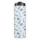 Concha de mar, tumbler térmico con temática de playa. Cintas azules sobre fondo blanco. Elementos coincidentes disponibles. Arte original de artistas que poseen ilustraciones. Use el botón de mensaje que aparece a continuación para obtener ayuda sobre la personalización y las solicitudes especiales. © Zoe Chapman Design