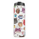 This artwork features a fun and whimsical seamless pattern composed of adorable cartoon cat faces in various vibrant colors, playfully interspersed with colorful coffee mugs, cups, and coffee pods. Tiny paw prints and coffee beans are scattered throughout, adding to the delightful chaos. The repetitive yet unaligned arrangement creates a dynamic and cheerful visual, perfect for adding a touch of playful charm to any design, from textiles to stationery.