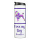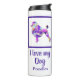 Silueta de perro mascota de Poodle francés púrpura, rosa, amarillo y azul patrón abstracto digital. Este tumbler térmico seguramente pondrá una sonrisa en cualquier cara de los amantes del perro. Además, es ecológica, así que puede conservarla por años. Cambie ‘Amo a mi perro’/ ‘Nombre’ por cualquier texto que le guste a ambos lados de la botella.