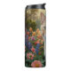 A pretty white and orange cat enjoying a beautiful Summer day surrounded by a charming pastel cottage floral garden.