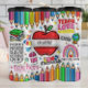 Este gráfico vibrante celebra a los educadores con un animado collage de frases edificantes e íconos con temas escolares. Cuenta con una gran manzana roja, filas de lápices de colores, libros apilados y un arcoiris vibrante. Mensajes como "MOTIVADOR DE INFLUENCIAS" y "profesores plantan las semillas que crecerán para siempre" resaltan el profundo impacto de la enseñanza.