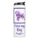 Patrón abstracto digital de silueta de perro mascota Pug morado, rosa, amarillo y azul. Este tumbler térmico seguramente pondrá una sonrisa en cualquier cara de los amantes del perro. Además, es ecológica, así que puede conservarla por años. Cambie ‘Amo a mi perro’/ ‘Nombre’ por cualquier texto que le guste a ambos lados de la botella.