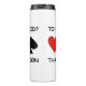 Si alguna vez te has preguntado si debes pujar o no, disfrutarás de este tumbler térmico de actitud de puente con los cuatro palos de cartas junto con la pregunta del puente sobre el truismo: "¿Pujar o no Pujar? Esa Es La Pregunta". Haz que otros hagan una doble toma con tu irónico y tímida actitud de puente con este puente diciendo tumbler térmico. ¡Con disculpas a William Shakespeare!