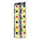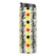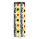 Resumen Tumbler termal del patrón de puntos de polka esgrimido diseñado por Nisha Prabhu CuteHomeGifts. Patrón abstracto colorido con garrapatas de rayas verticales negras y polka de color rojo negro sobre fondo amarillo.