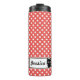 Patrón de puntos polka rojo adorable con etiqueta personalizada de gato negro.
