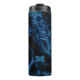 Purpurina azul claro monogramado sobre fondo azul oscuro