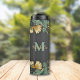 Este vibrante tumbler muestra un diseño de hojas de vegetación botánica de selva tropical exuberante, adornado con salpicaduras de purpurina dorado brillantes. Personalizado con su primer monograma y un nombre en tipo de letra cursiva.