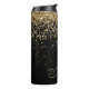 Purpurina Glam Gold Elegante Tumbler Termal Monograma. Personalice fácilmente este diseño de tumbler térmico de moda de moda con un elegante purpurina brillante de oro sobre un fondo negro. El diseño incluye su monograma manuscrito con giros de bonito y nombre.