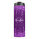Un fondo violeta profundo con elegantes goteos en purpurina de imitación violeta, pinturas de goteo. Texto de color blanco. Personalice y añada su nombre, letra de monograma y nombre completo. El primer nombre se escribe con un guión de estilo con letras a mano blanca.