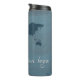 Dejar que la aventura comience el diseño de texto con la decoración de mapas del mundo sobre fondo gris, azul