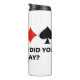 Si juegas con un compañero de juego de cartas rápido, disfrutarás de este puente irónico que dice un tumbler térmico con los cuatro trajes de cartas junto con el comentario a menudo escuchado en la mesa del puente: "¿Qué carta jugaste?" Haga que otros hagan una doble toma en la mesa del puente con esta consulta de puente de hoy en el tumbler térmico! ¡Tumbler térmico perfecto para cualquier jugador de puente con una memoria realmente corta!