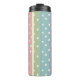 Botella de Agua de Viaje / Taza Térmica de Pink, Verde, Azul y Morado con Rayas Modernas y Lunares de Crema.