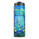 Un tarro de albañil de luciérnagas brillantes o bichos relámpago con un fondo nocturno estrellado. Un elegante diseño rústico rural. En colores azul, verde y amarillo. La personalización es opcional.