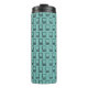 Esta botella termal tiene un diseño moderno de mediados de siglo de cuadrados con una línea y una línea de círculos, todos negros, repitiendo a lo largo del diseño en un campo de marisco. Si te gusta el diseño pero prefieres colores diferentes, envíame un mensaje.