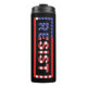 Este diseño presenta la palabra RESIST escrita en los colores de la bandera estadounidense sobre un fondo oscuro.