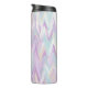 Un diseño de chevron abstracto en una paleta morada, turquesa, marfil y blanca.