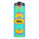 Esta bolsa termal de tumbler tiene un divertido y divertido patrón abstracto de ovarios y círculos en colores brillantes. Este tumbler se puede personalizar cambiando el nombre en la parte delantera.