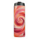 Modernos y abstractos remolinos de brillantes tonos de rosa y salmón aportan un impresionante color a este diseño.
