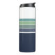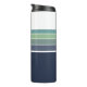 Un divertido vaso termal retro/mod azul marino, verde azulado y rayado verde es la divertida vibra de los años 70/80 que mantendrá tu café o té caliente en marcha.