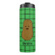 Tubo termal adorable con una linda patata marrón personalizado. El fondo es un lindo patrón retro de una rejilla negra sobre un sólido color verde negrita. Una plantilla en la parte inferior e izquierda a la papa para agregar su nombre.