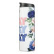 Este elegante gráfico muestra el poderoso estímulo: "REZAR por ello", "REZAR por ello" y "REZAR por ello". Cada línea del mensaje se presenta en diferentes tonos de rosa, azul claro y azul marino, con "PRAY" en negrita y las frases que lo acompañan en un guión delicado. El texto central está bellamente enmarcado por frondosos bordes de rosas rosas y azules, hortensias y follaje verde, creando un diseño sereno y inspirador.