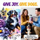 Un alegre Perro de Montaña Bernés con sus característicos marcadores y una expresión feliz, de boca abierta, se extiende enérgicamente a través de un vibrante jardín de girasoles, peonías púrpuras y otras flores silvestres coloridas. Las salpicaduras de las acuarelas pintorescas y las delicadas mariposas realzan el ambiente animado y alegre de este encantador retrato canino.