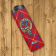 Insignia de Rosa de clan escudo rodeada por una correa y hebilla sobre el fondo tartán. Texto personalizado.