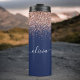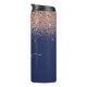 Termo Rosa Dorado de Rosa Azul Marino Brillo Monograma