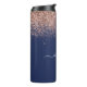 Azul Marino y Rosa Dorado - Rosa Clido Brillante Brillo Metal Pulido Monograma Nombre Vaso para Bebidas. Esto hace el regalo perfecto para cumpleaños 16, boda, despedida de soltera, aniversario, baby shower o fiesta de soltera para alguien que ama el lujo glamoroso y los estilos chic.