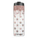 Tumbler térmico de moda, con gráficos de un punto y estrella de oro rosa, sobre blanco, patrón y más purpurina de oro rosa goteando desde arriba. Personalice el texto negro para que se ajuste a sus necesidades. Gran idea de regalo para ella.