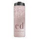 Un rosa dorado fino fondo metálico con elegante oro rosa, goteo de purpurinas en imitación rosa, pinturas de goteo. Texto oscuro de color oro rosa. Personalice y agregue sus iniciales de monograma y su nombre.