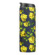 Rosas elásticos de primavera amarillos sobre el tumbler de impresión azul marino con su elección de la letra inicial.