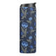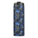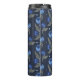 Pattern with blue flowers, dots and green leaves on dark background. Rustic folk art floral texture