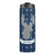 ¡Este tumbler termal de ciervo tiene un toque moderno en lo rústico! Su tema de los bosques es moderno y bonito. El busto de ciervos grises se asienta sobre un patrón blanco moderno de flechas y azul marino oscuro. Personalice su nombre en escritura blanca para obtener un poco más de singularidad.