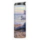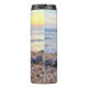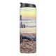 Salven las tortugas de mar, una pequeña y bonita tortuga marina en la playa de arena con las olas detrás.
