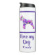 Patrón abstracto digital Schnauzer mascota de la silueta de perro morado, rosa, amarillo y azul. Este tumbler térmico seguramente pondrá una sonrisa en cualquier cara de los amantes del perro. Además, es ecológica, así que puede conservarla por años. Cambie ‘Amo a mi perro’/ ‘Nombre’ por cualquier texto que le guste a ambos lados de la botella.