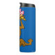 Echa un vistazo a Scooby-Doo sentado con una gran sonrisa, sosteniendo una rebanada de pizza de costra rellena.