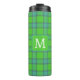 Scottish green and blue plaid tartan monogram thermal tumbler .