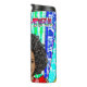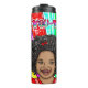 Felices y hermosos colores llamativos y una niña riéndose con el texto Be-You-Tiful en un estilo de arte pop.