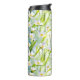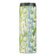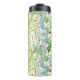 .A thermal tumbler decorated with soft white and lavender wildflowers on a gentle blue‑green background, offering a calming, nature‑inspired aesthetic perfect for hot or cold drinks on the go and an elegant gift for anyone who loves botanical art.