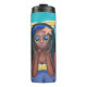 No importa el escenario, este tumbler náutico será una gran adición a tu gabinete. Cuenta con una sirena de pelo rizado con grandes gafas de sol, que lleva una venda y una estrella de mar en el pelo. Para crear la pieza original, usé marcadores de cobre, lápices de colores y un lápiz blanco pastel para el resplandor en las gafas de sol y las copas de las conchas.