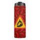 Signo de advertencia de triángulo con una silueta de pimienta y llama.
