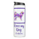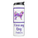 Patrón abstracto digital sonriente sammy mascota de silueta de perro morado, rosa, amarillo y azul. Este tumbler térmico seguramente pondrá una sonrisa en cualquier cara de los amantes del perro. Además, es ecológica, así que puede conservarla por años. Cambie ‘Amo a mi perro’/ ‘Nombre’ por cualquier texto que le guste a ambos lados de la botella.