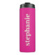 Este sencillo tumbler térmico minimalista incluye su nombre en rosa rubor sobre un fondo rosa mágenta caliente. El nombre y los colores se pueden cambiar fácilmente haciendo clic en "Personalizar".