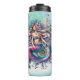 Tumbler de sirena con fondo de acuarela, flores y conchas.