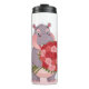 Termo Smiling cartoon hippo holding a huge bouquet